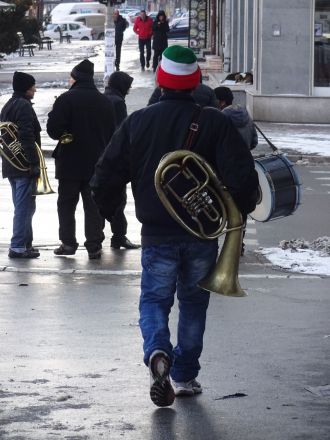 Uppehållet varade i kanske fyra timmar. Nu var saken klar: Budapest fick vänta till nästa dag. ”Stanna en natt i Subotica! Det är en fin stad”, föreslog en av passagerarna i kupén bredvid. Jag steg dock av redan i Novi Sad, för magen kurrade. Min plan var att äta där och sedan fortsätta till Subotica. Utmed den makalöst långa gatan, kantad av höga hus, som leder från den jättelika järnvägsstationen till centrum, höll jag utkik efter öppna restauranger. Jag fick gå rätt långt innan jag hittade någon - ett modernt ställe med italienskklingande namn. Jag hade just betalat när ett vilt sammelsurium av toner nådde mina öron. Romsk musik, tänkte jag direkt, och snart fick jag syn på romska män med brassinstrument ute på gatan.