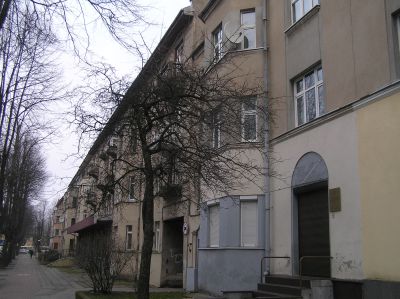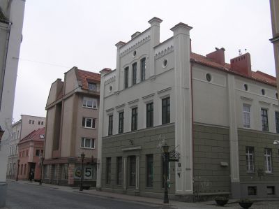 Detta vackra hus är fotograferat från den plats där Sankt Johannes-kyrkan en gång stod (Turgaus-gatan; Torggatan). Kyrkan skadades under andra världskriget och revs av ryssarna.