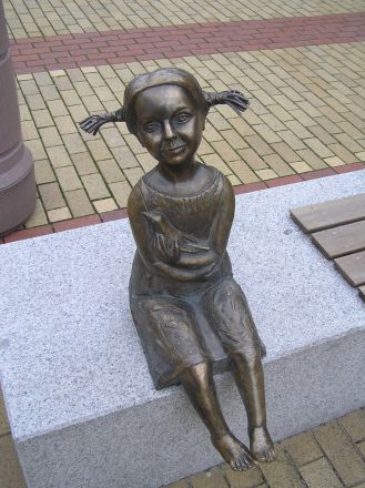 Det första jag gjorde var att köpa returbiljett: redan 17.05 måste jag återvända till Vilnius. Det blev ett kort, alltför kort besök. När jag kommit ut från stationen och skulle korsa gatan upptäckte jag en staty: en kvinna som var på väg liksom jag. I den ena handen höll hon en resväska, i den andra ett barns hand. Barnet såg ut att gömma sig bakom henne. Min första tanke var: tyskar som flyr undan ryssarna i krigets slutskede. Jag har tagit reda på att statyn heter "Avsked" och restes i samband med Klaipėdas 750-årsjubileum. Den symboliserar flykten undan Röda armén 1944. När ryssarna intog Klaipėda i januari 1945 lär de ha stött på endast sex personer i hela staden.