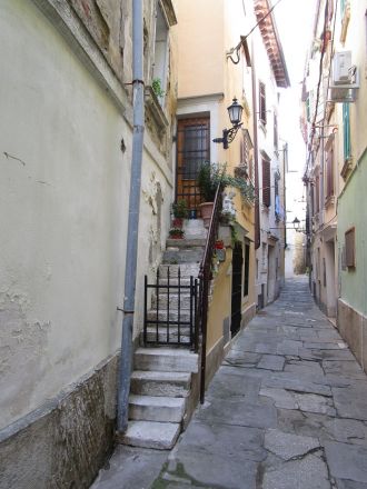 När man går i de trånga gränderna, med höga husväggar på ömse sidor, är det som att vara inomhus. Ljuden inifrån husen tränger ut i gränden – det kan vara slammer med bestick, röster från en bar eller ett barn som ropar på någon. Gränderna är fulla av vardagens skönhet - Tartini-torget av en anspråkslös elegans, och övergången mellan dem är mjuk. Kvällen innan hade jag suttit på Tartini-torget och skrivit vykort. När det var dags att dra mig mot pensionatet såg jag ett gäng tonåringar sitta och prata på torget. Jag gick in i gränden och tänkte på hur olika uppväxtmiljöer kan vara. Några sitter med sina kompisar på ett vackert, rofyllt torg, omgivna av hav och trånga gränder, andra får nöja sig med monotonin i en betongförort.