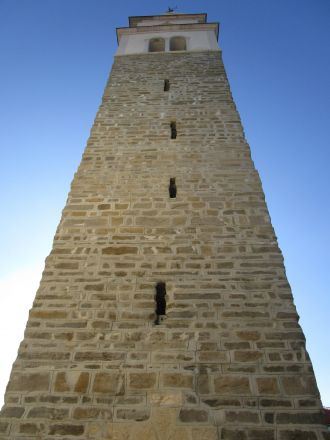 Bredvid kyrkan reser sig kampanilen. Jag gick in och mötte en skrattande äldre kvinna. När det visade sig att jag inte hade kontanter eller hon inte kunde växla min sedel bjöd hon mig att stiga upp ändå. De smala trapporna löpte utmed de fyra murarna och resten var ett schakt som blev allt djupare… Jag kom inte så långt. Kvinnan skrattade.